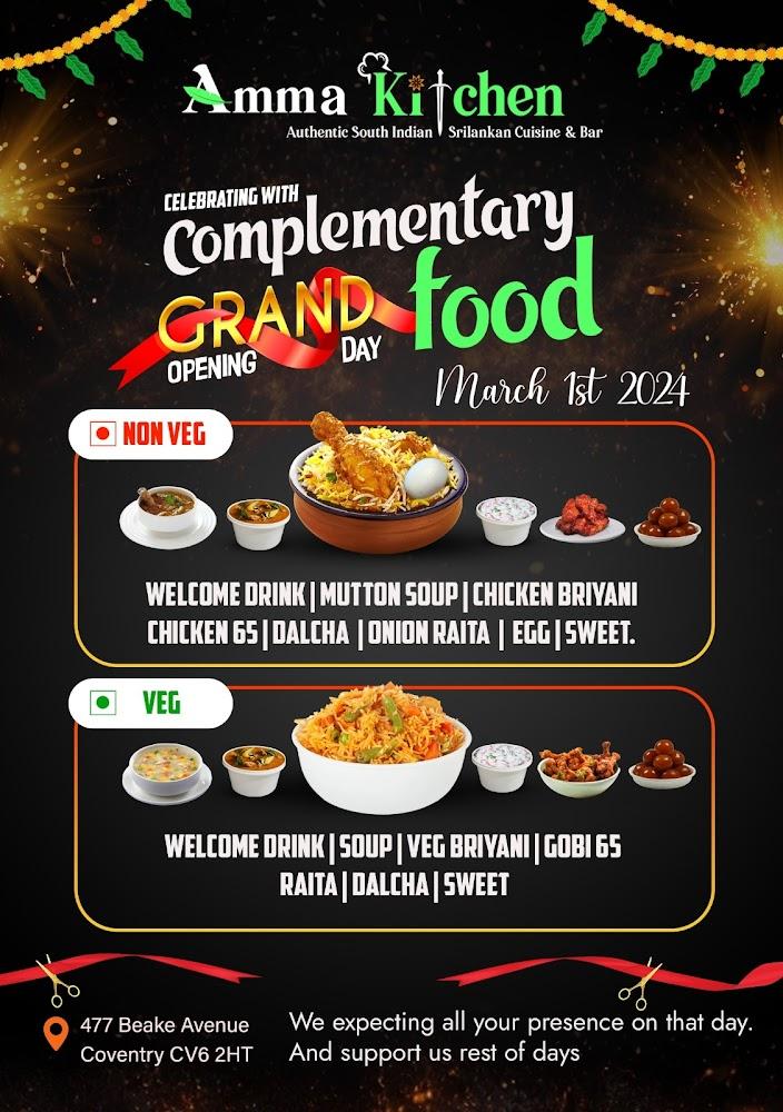 Amma Kitchen Coventry stands proudly in a neighborhood known for its rich cultural diversity and welcoming vibe. Nestled at 477 Beake Avenue, this eatery invites you into a realm where Indian and Sri Lankan flavors blend seamlessly. The restaurant combines traditional touches with a modern aesthetic, creating an inviting atmosphere perfect for family gatherings or solo meals. With generous opening hours throughout the week, it caters to various dining habits—early breakfasts, leisurely brunches, and late-night dinners.
